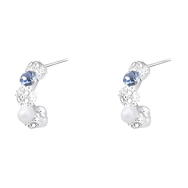 Голубой бриллиант из жемчуга, модные элегантные небольшие серьги, дизайнерская изысканная серебряная игла, яркий броский стиль, изысканный стиль, легкий роскошный стиль, простой и элегантный дизайн, серебро 925 пробы