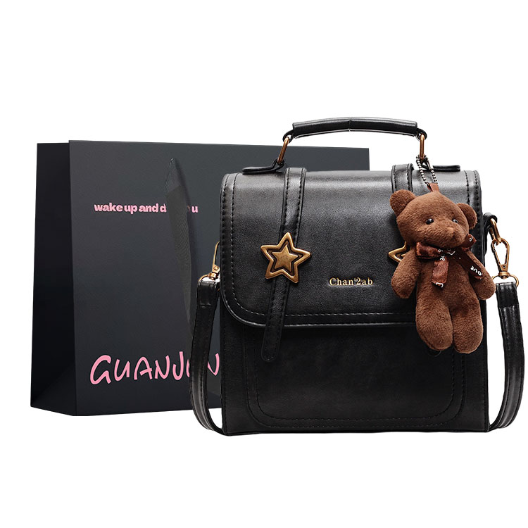 Ретро портативный школьный рюкзак, барсетка для выхода на улицу, полиуретановая черная сумка через плечо для путешествий, с медвежатами