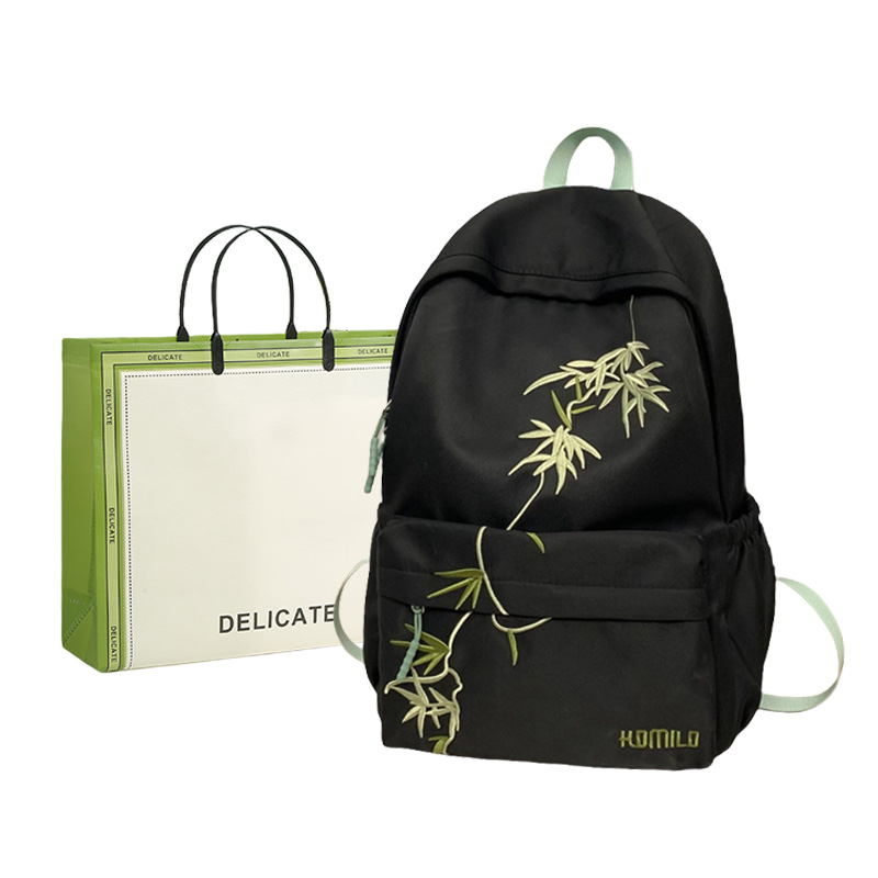 Китайская вместительная и большая вышивка для школьников, модная трендовая универсальная подвеска, рюкзак подходит для мужчин и женщин, нейлоновая черная хаки детская сумка, премиум класс, в западном стиле, с вышивкой, китайский стиль, подходит для подрос