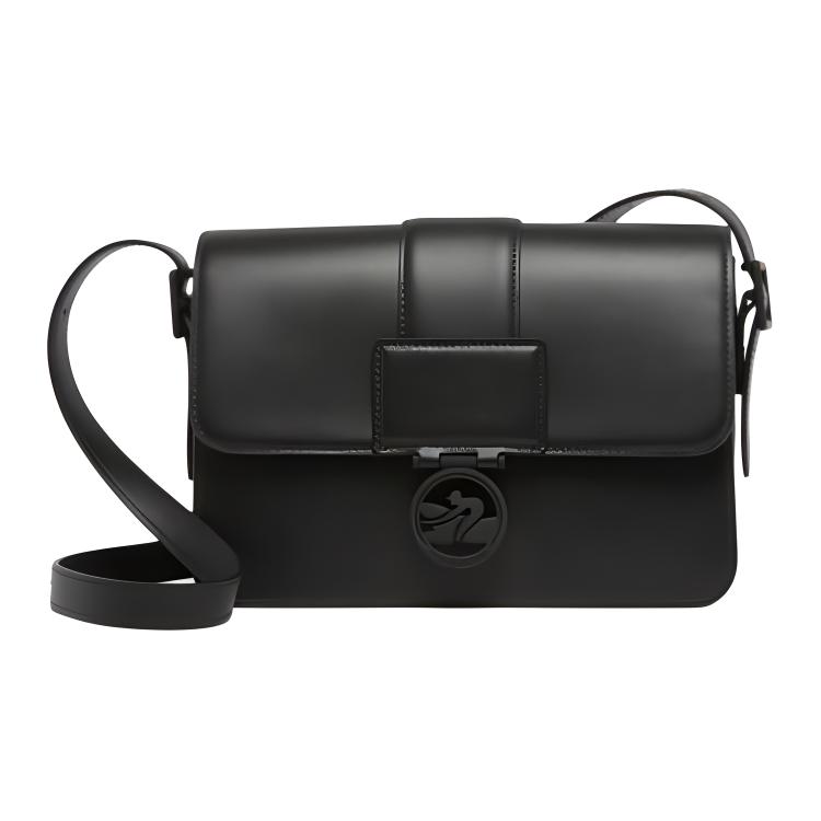 LONGCHAMP Магнитная складная кнопка, кожаная черная сумка на одно плечо