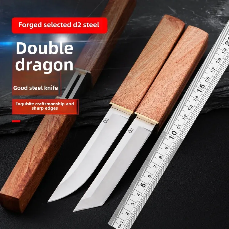 Юго -восточная азиатская горячая двойная ножа, хризантема, фруктовый нож открытый нож D2 Стальной острый нож Портативный нож, портативный защитный полевой нож для кемпинга.