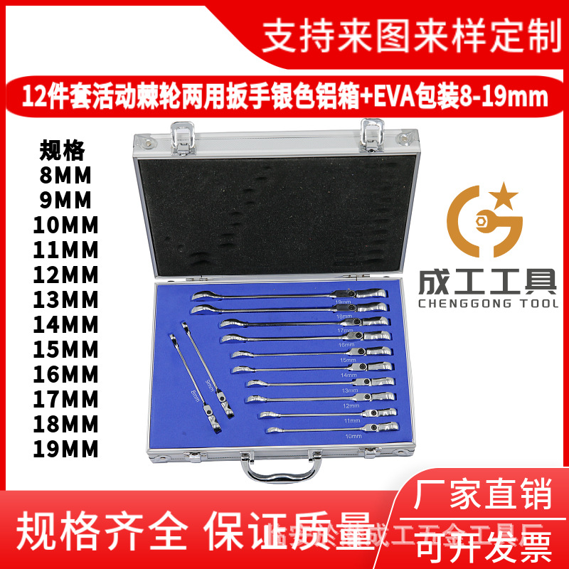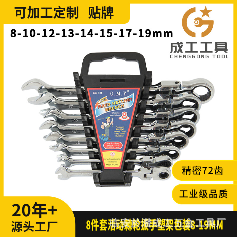 Готовый инструмент, набор из 8 предметов, подвижный храповой ключ, упаковка в пластиковой рамке, 8-19 мм, быстрый цвет сливы, производитель с открытым исходным кодом