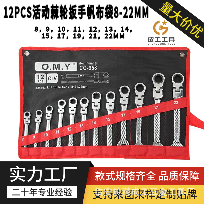 Инструмент Chenggong 14pcs с фиксированным храповым гаечным ключом Canvas Bag 8-22 мм установлен инструмент