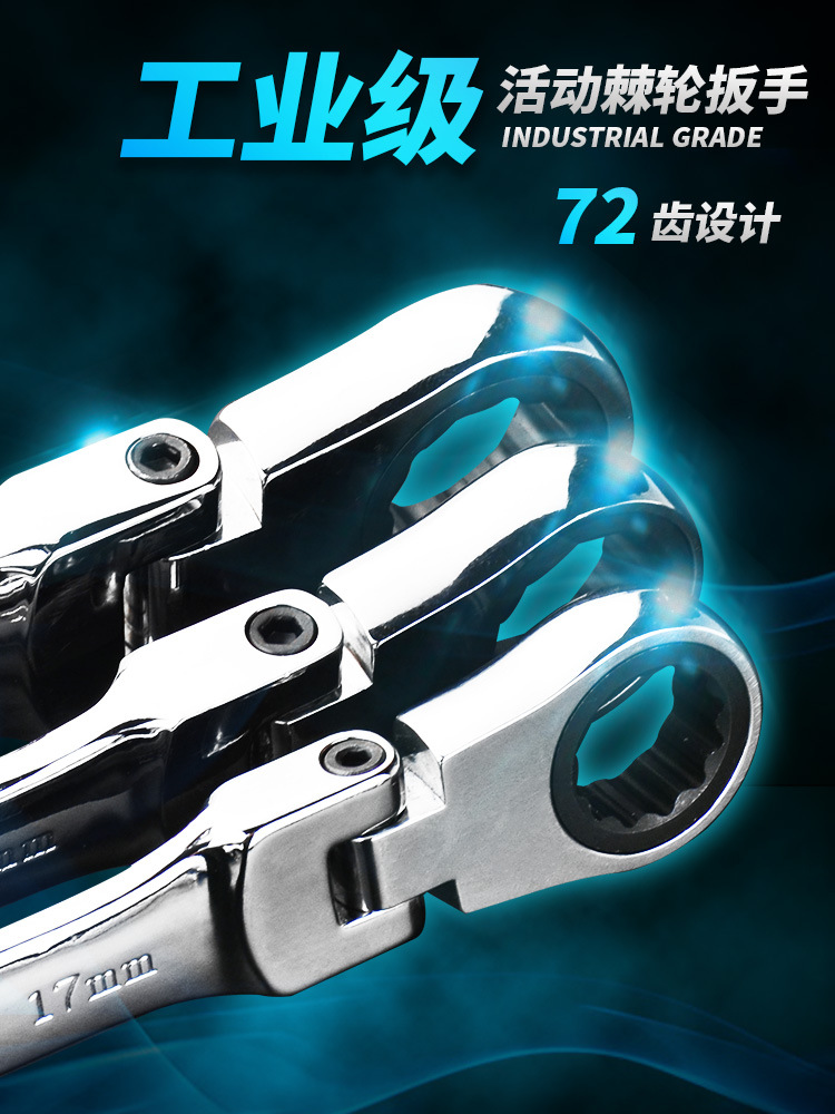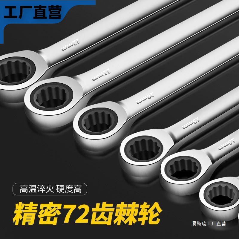 Трансграничный популярный трещоточный ключ с качающейся головкой, двусторонняя подвижная головка, быстрый ручной храповой механизм двойного назначения, материал из высокоуглеродистой стали