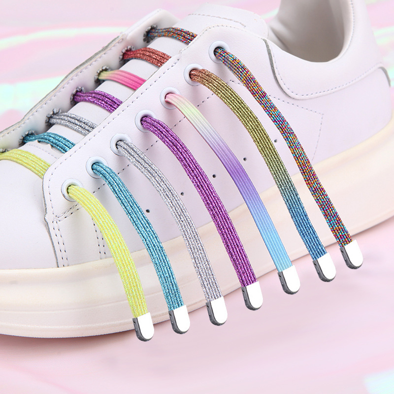 Фиксаторы для шнурков, эластичная детская застежка, мигающие радужные туфли, аксессуары, золото и серебро