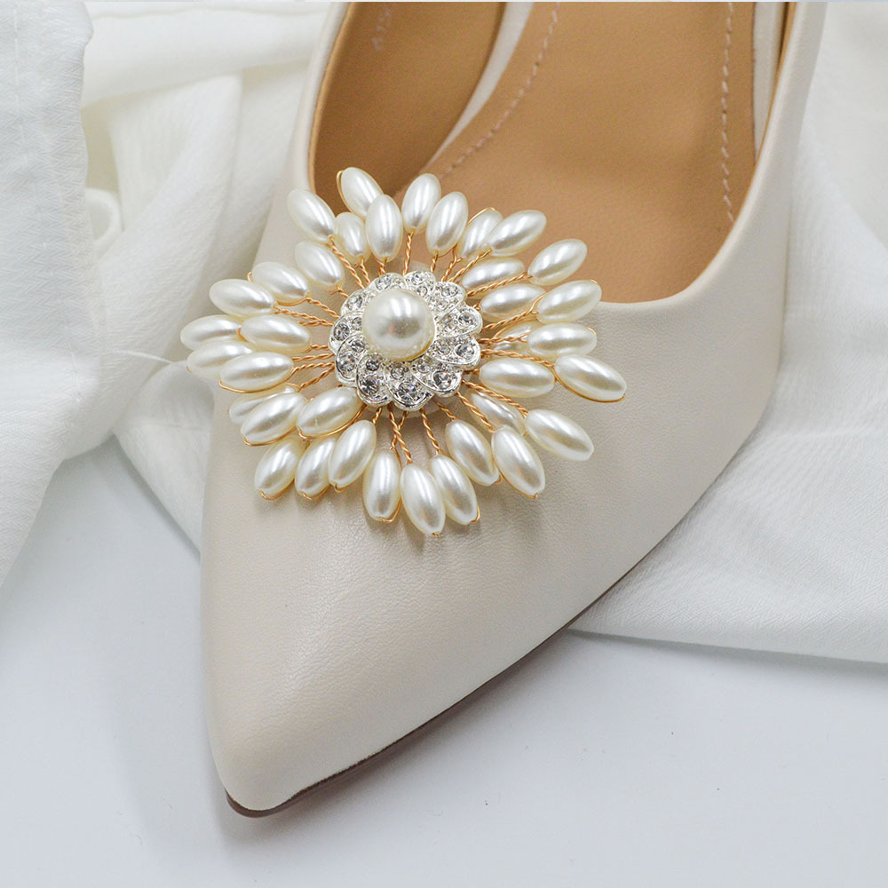 Съемная квадратная пряжка для обуви из жемчуга, свадебные туфли, сандалии на высоком каблуке