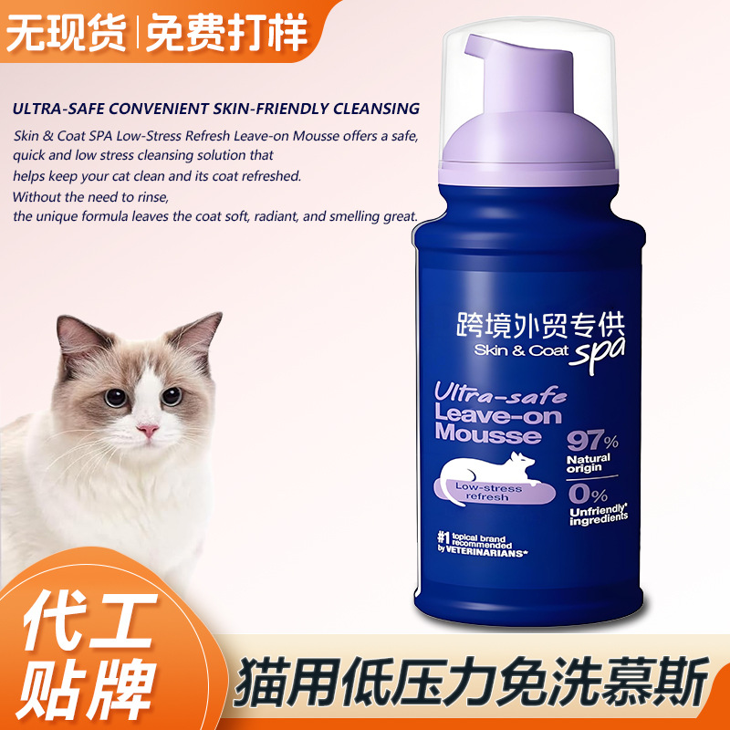 Индивидуальный OEM трансграничный мусс для кошек, не требующий мытья OEM, полностью английская пена для химической чистки домашних животных, не требующий мытья гель для душа
