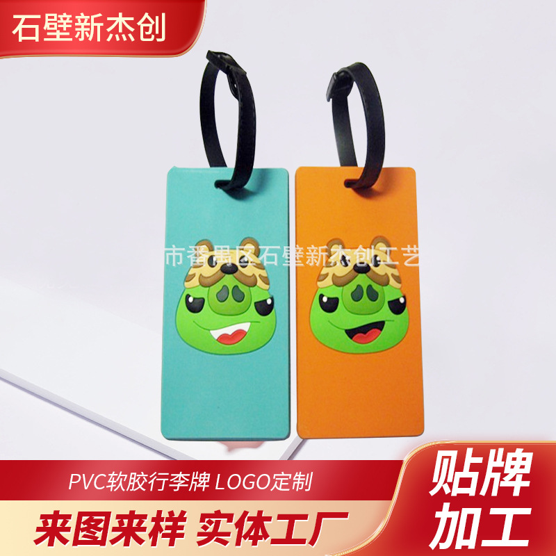 Креативный чемодан для путешествий из ПВХ, мультяшная багажная бирка, подвеска, с печатью вашего логотипа
