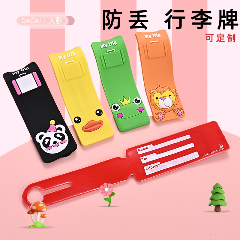 Мультяшная багажная бирка из ПВХ, багажный аксессуар для сумки, делается под заказ, с печатью вашего логотипа