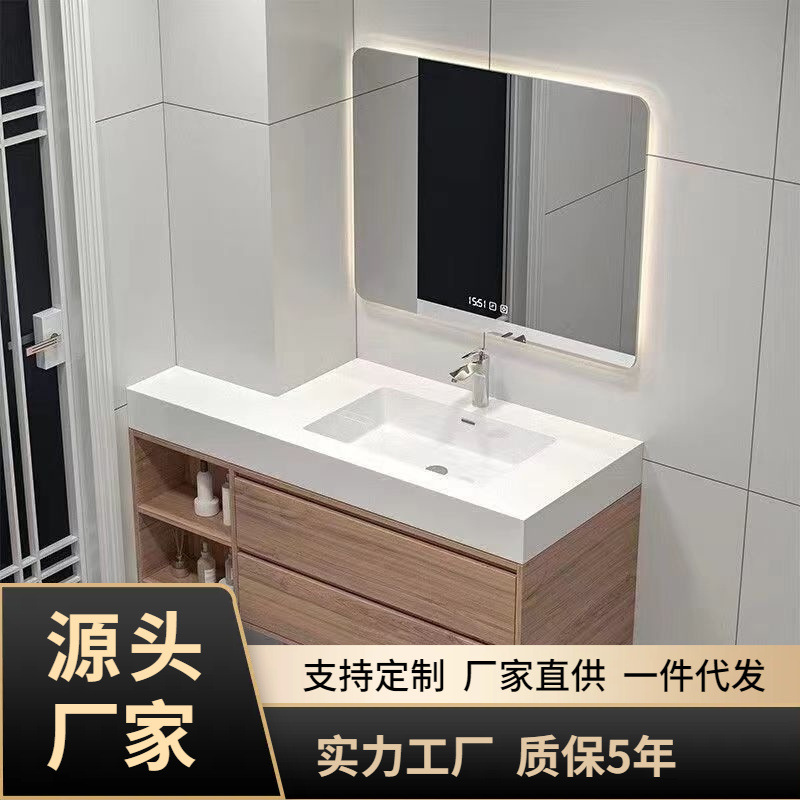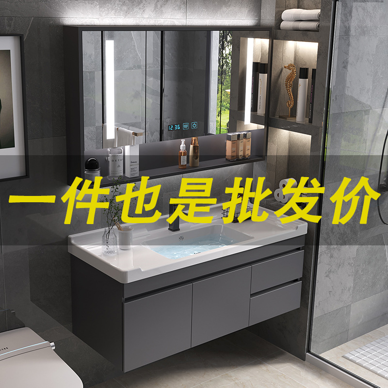 W7 Сплошная древесная интеллектуальная шкаф для ванной комнаты Керамический интегрированный бассейн висящий настенный стиль стирая лица