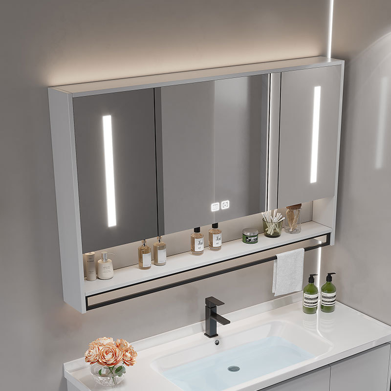 Космическая алюминиевая ванная комната умное зеркало шкаф для ванной комнаты подвесная стена -тип туалетного хранения зеркальная стеклянная дверь с легкой туманной стеной тип виса