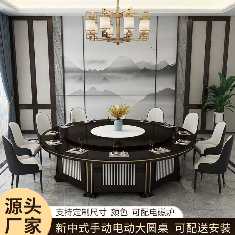 Отель Electric большой круглый столик Новый китайский обеденный стол с твердым деревом и стул клубная коробка 10 человек, 15 человек, 20 человек горячие столы с горшками