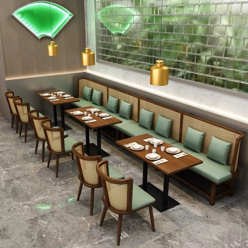 Тема западного ресторана Tea Restaurant Столичные столы с твердым деревом и комбинация стульев Новый китайский ресторан для китайского общественного ресторана Hot Pot Restaurant обратно на стен