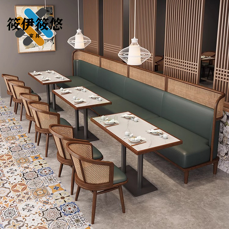 Простая тема китайский западный ресторан с твердым деревом диван чайная башня Xiangchuan Ресторан японский ресторан и стул Комбинированная боевая комбинация