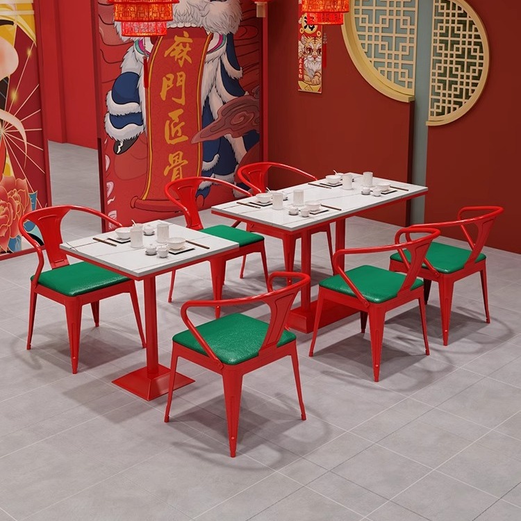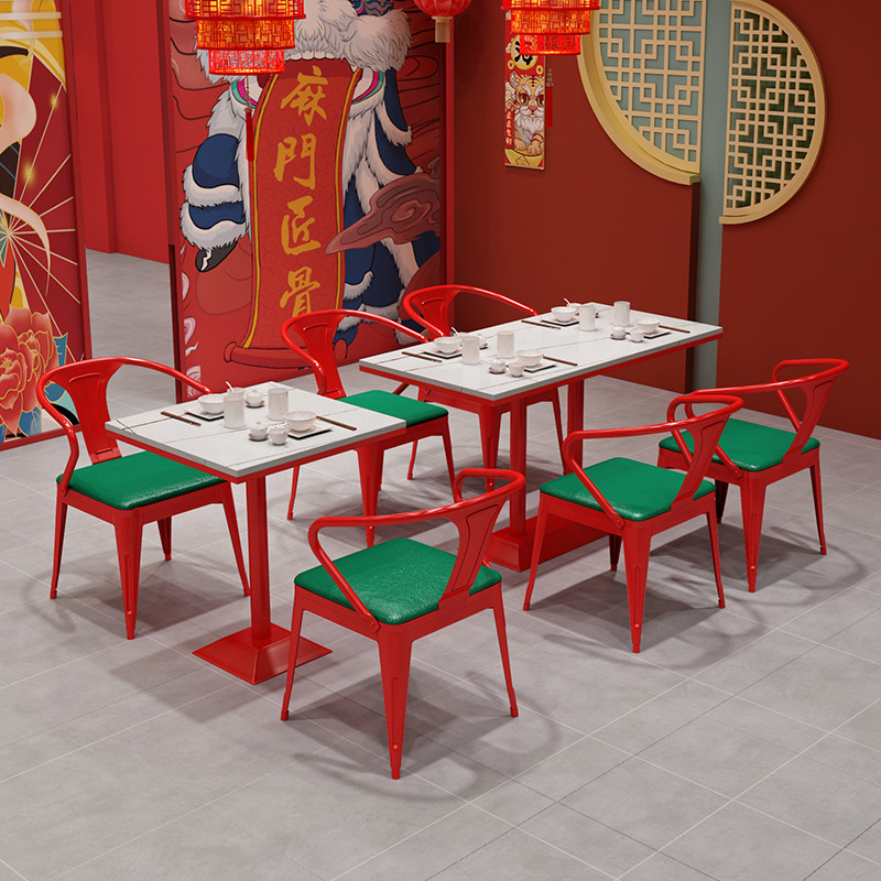 Guo Chao Hotpot Restaurant Stable Stable и стул Красная карта сиденья шашлыки для благовоний ресторан ресторан для барбекю Железный мраморный стол и комбинация кресел