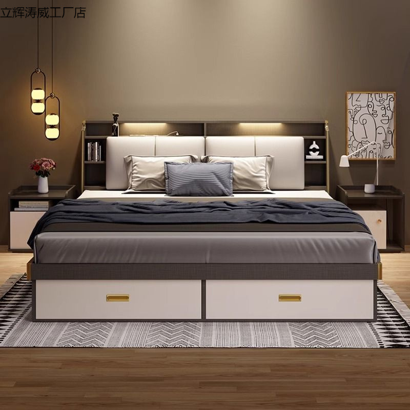 Кровать современная простая высокая коробка для хранения кровать двуспальная спальня для спальни большая кровать свадебная кровать маленькая квартира