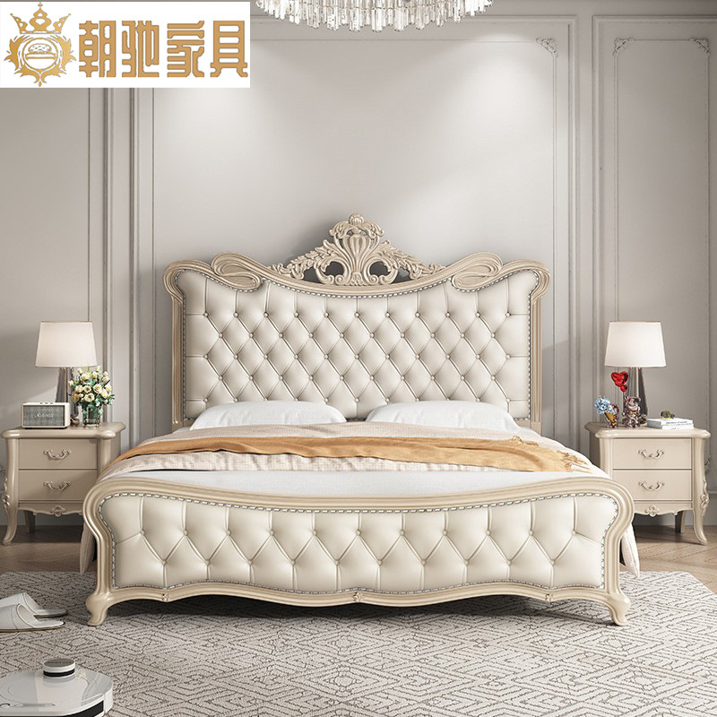 Европейская легкая роскошная сплошная кровать из дерева американская двуспальная кровать 1,8 м французская кровать принцесса главная спальня современная легкая роскошная крем стиль подлинная кожа