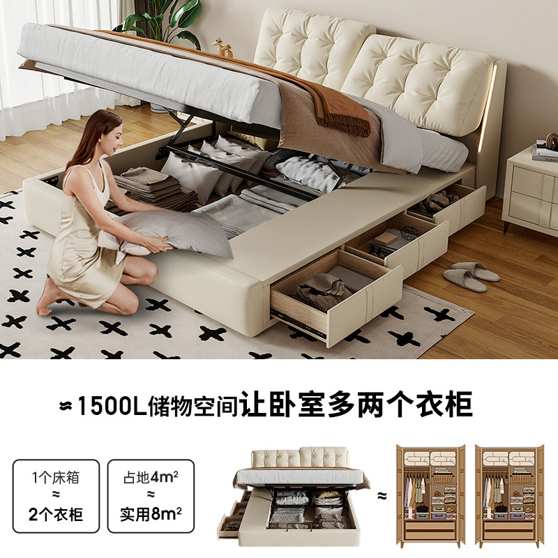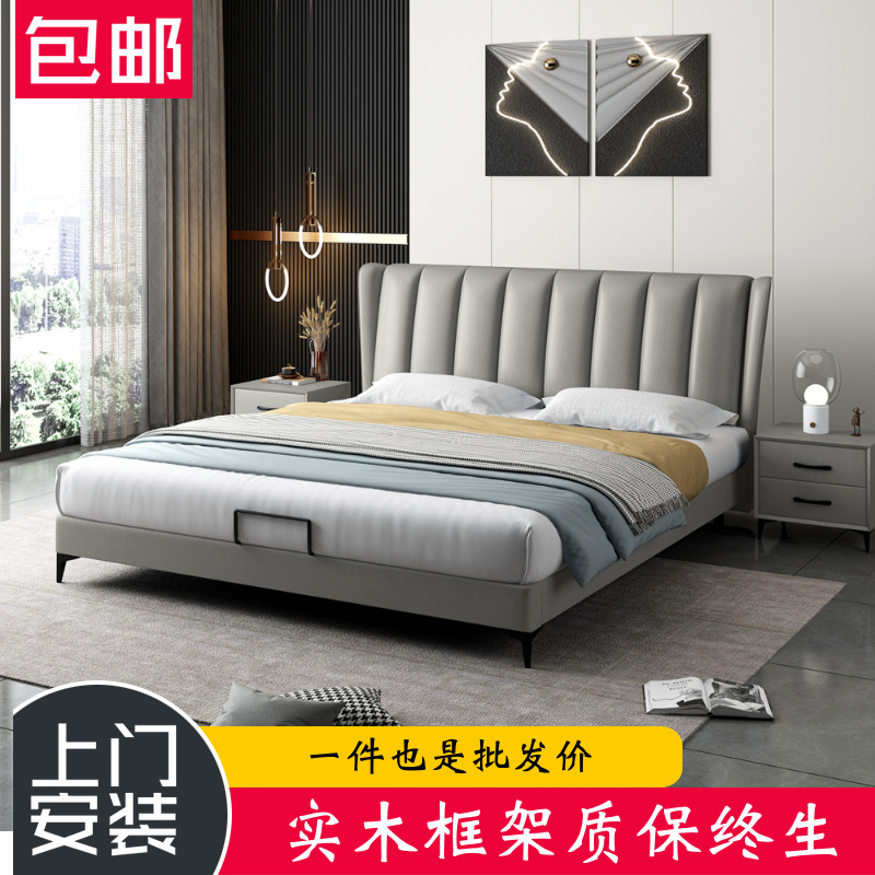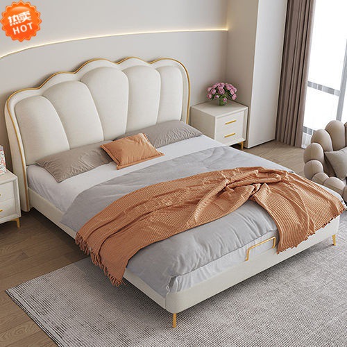 [Ткань -кровать] Производитель прямой продажа скандинавской легкой роскошной технологии освобождения от ткани мягкая кровать главная спальня 1.8 Хранение сплошной древесина