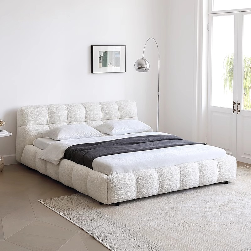 Кровать татами в европейском стиле ins ins inste-кровать современная простая кровать для пряжки американская главная спальня легкая роскошная напольная двуспальная кровать