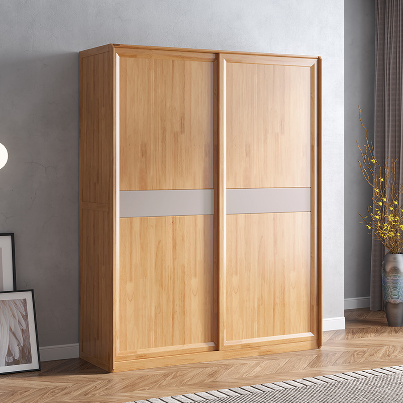 Нордическое сплошное дерево толкание шкаф с перемещением двери дверь висят одежду для хранения стержня.
