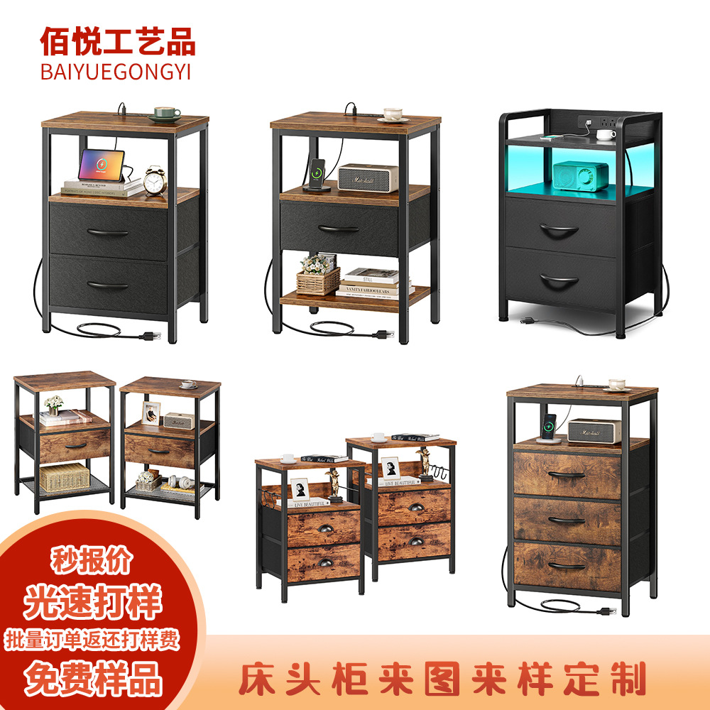 Умный прикроватный шкаф высокая модель простая современная маленькая спальня легкая роскошная роскошная высокоуровневая беспроводная зарядка Трехноги