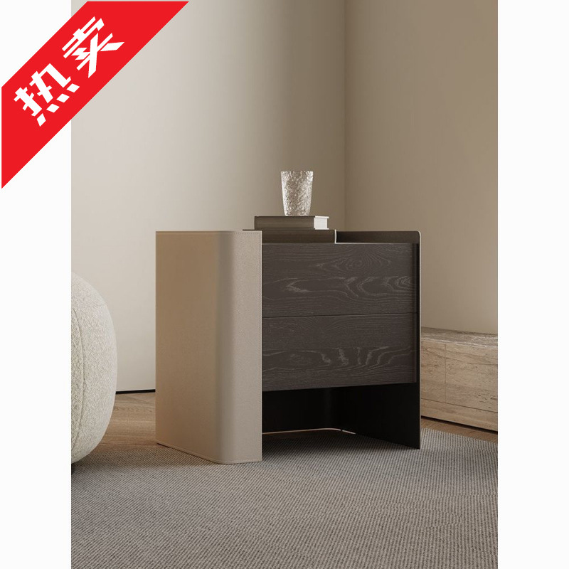 Итальянский минималистский прикроватный спальня сплошной древесина хранилище современное старшее дизайнер простой прикроватный шкаф легкий роскошный седельный кожа
