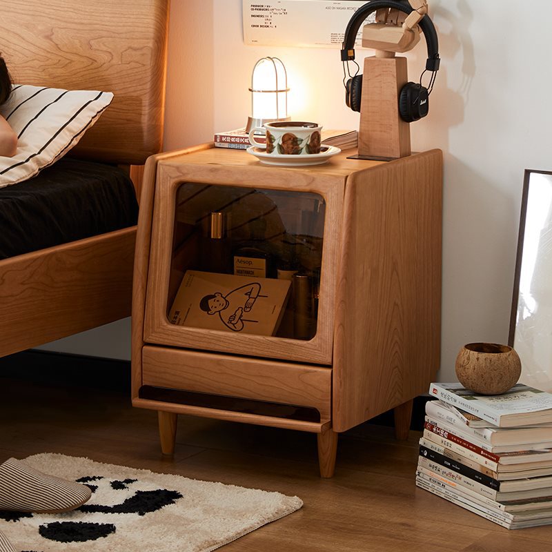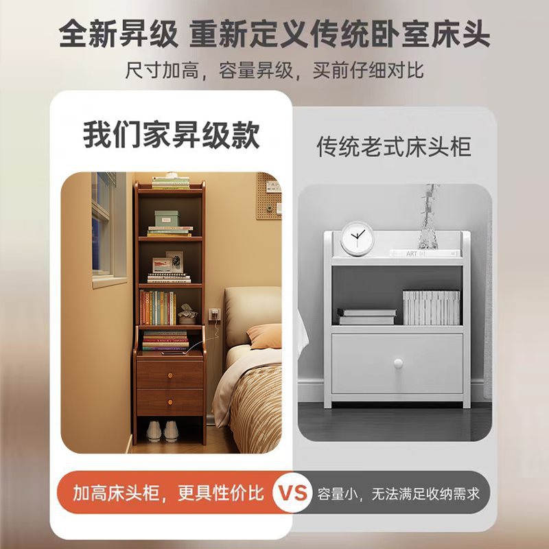 Шкаф для кровати прост, а современная кожаная сплошная древесина узко -краю шкаф для хранения.