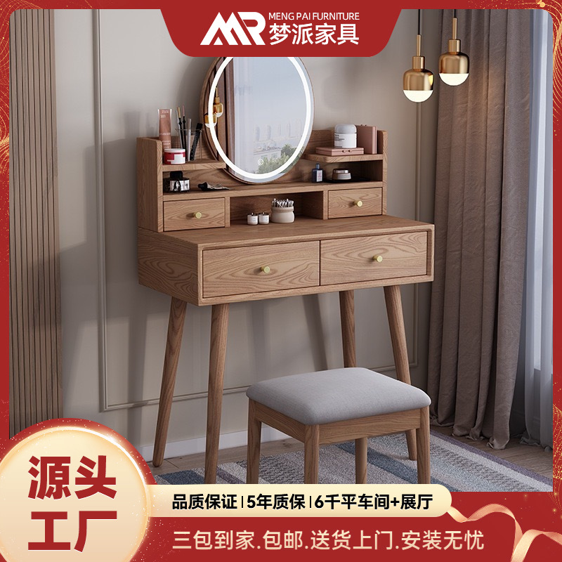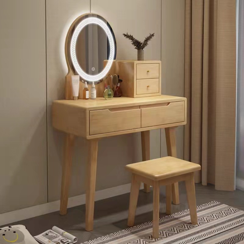 Скандинавский современный и минималистичный туалетный столик из натурального дерева, маленькая система хранения