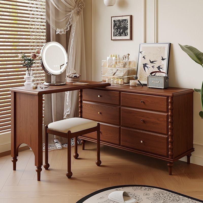 Ретро туалетный столик для спальни, телескопическая система хранения из натурального дерева