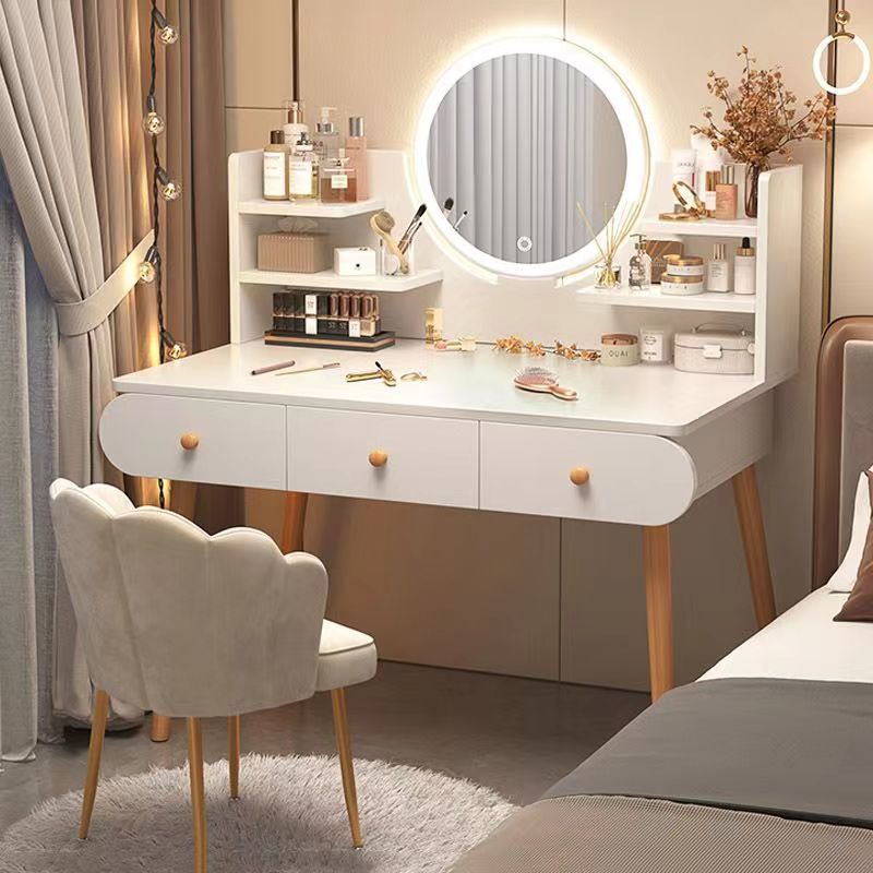 Современный и минималистичный туалетный столик для спальни, регулируемая кремовая система хранения