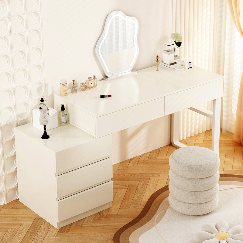 Современный и минималистичный туалетный столик для спальни, кремовая система хранения с подсветкой