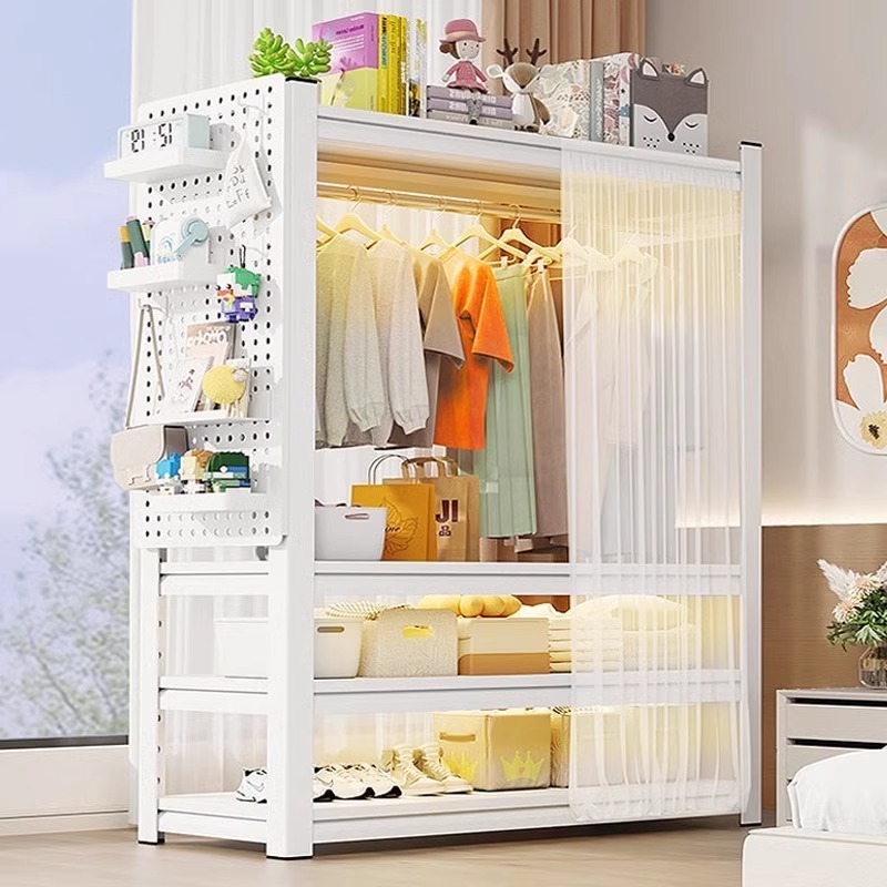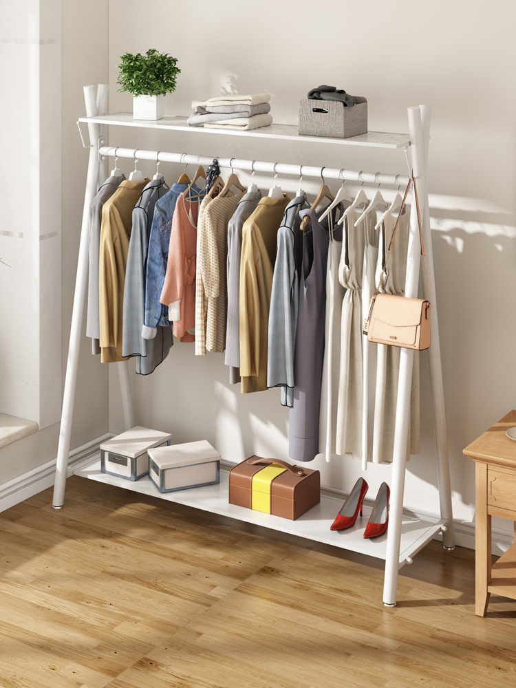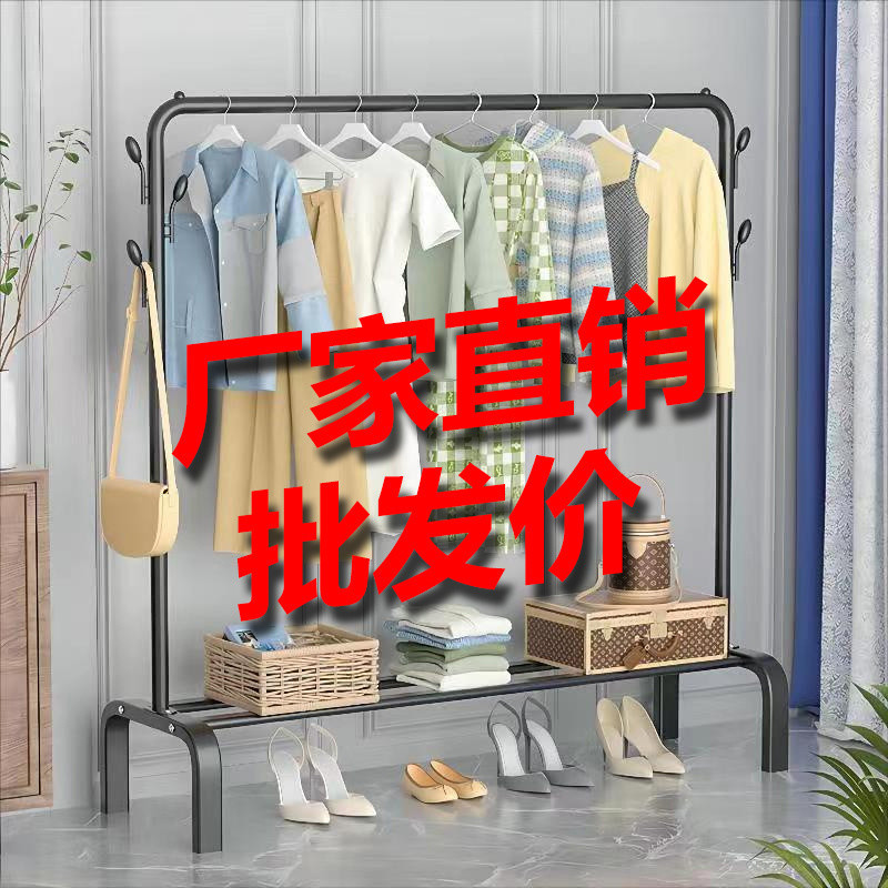 【Утолщенная углеродистая сталь】 Простая открытая вешалка для одежды спальня домохозяйственная аренда пола на пол, капюшона многослойная стойка для хранения