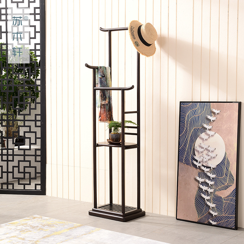 Новый китайский стиль сплошной древесина дзен дзен подвесная вешалка приземляется на земле пять насыщенных шляп