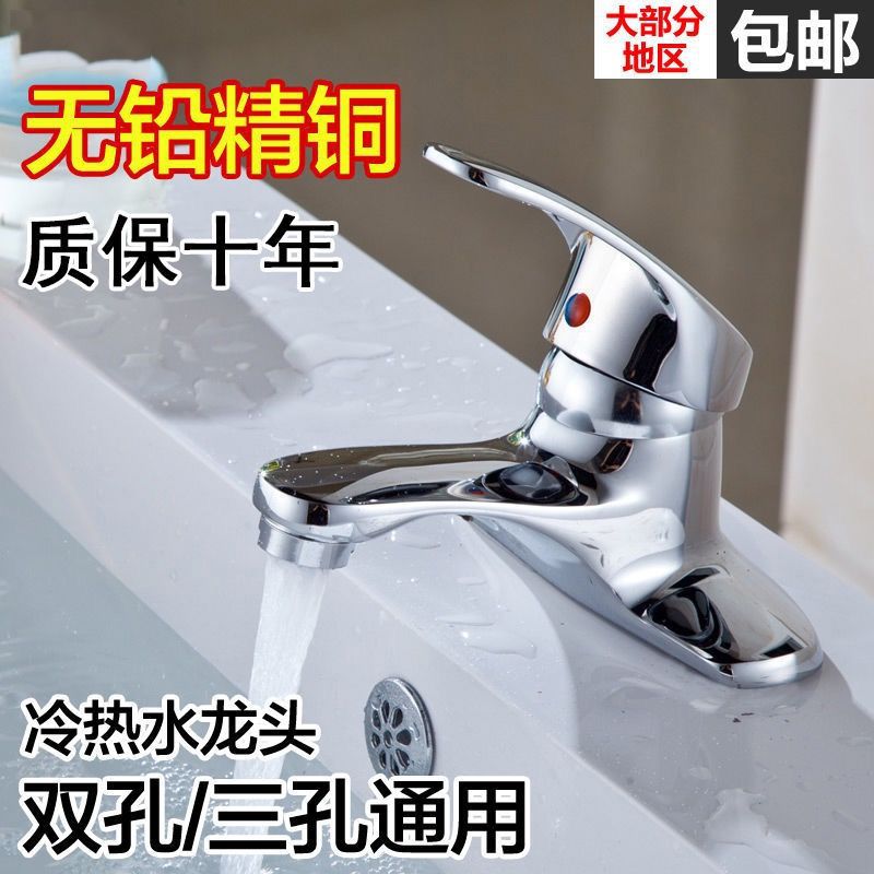Медный бассейн ванной комнаты с двойным отверстием вращающийся горячий и холодный трехул