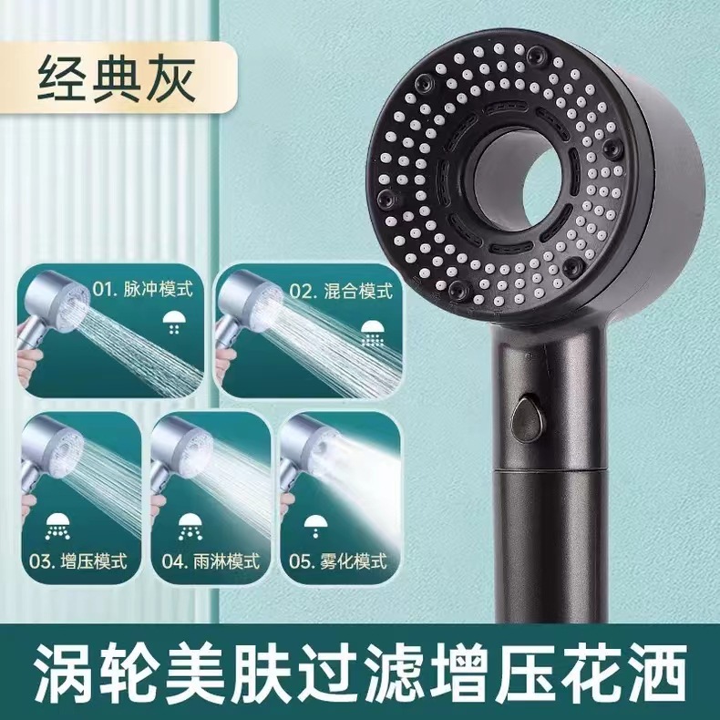 Home Home-Hearheld Shouse Пятиступенчатая душевая нагнетающая нагнетающая нагрузка набор Abs Silicone Hole Paint Head Head Head Head Head