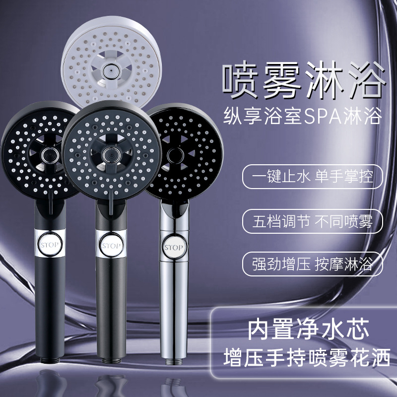 Душ с наддувом с наддувом черной пятиступенчатая насадка для душа портативная головка для душа мощный душ с черным воином с наддувом