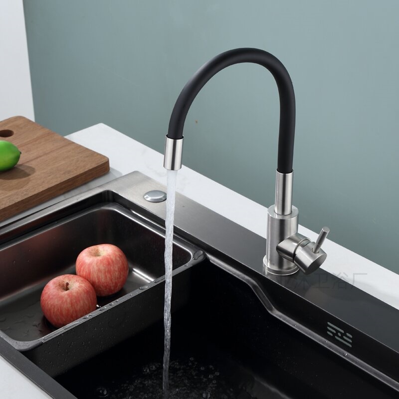 Русский 304 кухонный черный силиконовый универсальный трубчатый смеситель для раковины из нержавеющей стали, вращающийся бытовой кран для горячей и холодной воды
