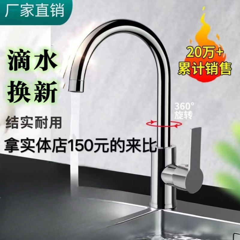 Кухонная смесительная раковина для мытья горшки на тазовом тазом бассейне, горячая, холодная смешанная водяная смеситель, унылая плоская труба, вращающаяся вода 8008