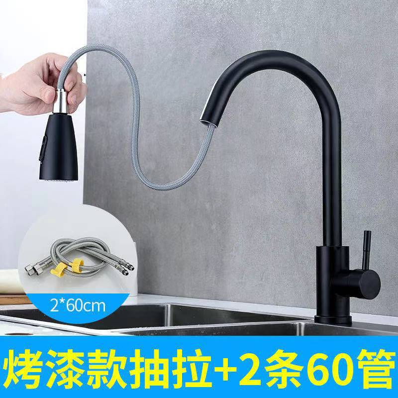 Черный вытянутый кухонный смеситель горячая и холодная вода для бытового убирающегося универсального брызговистого раковины