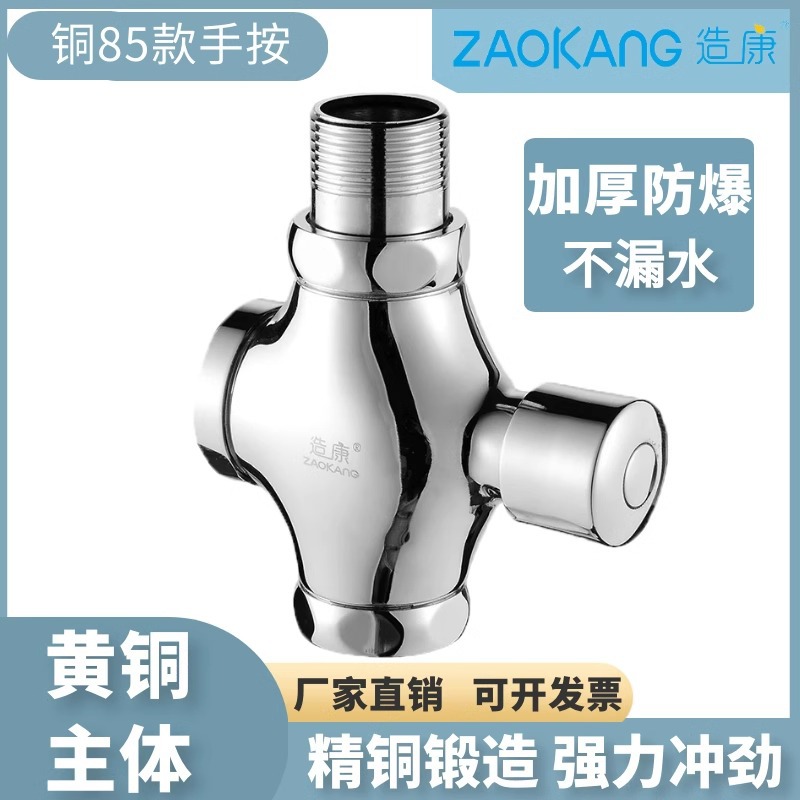 造康 Все медное корпус 85 Flush клапан четырехсторонний нажатие рука Специальный клапан Общедоступный туалетный туалет.