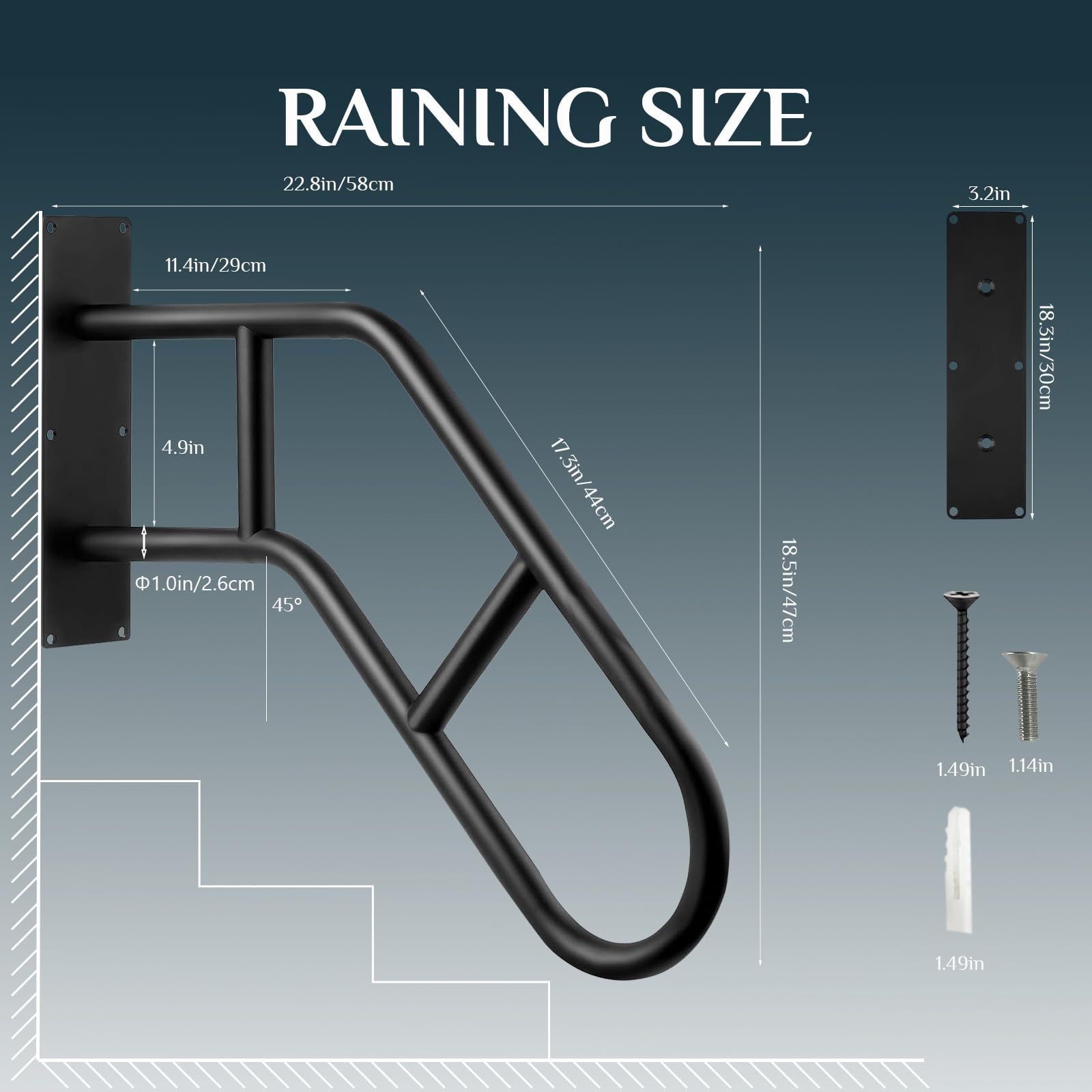 Матовые черные наружные поручни 1-3 шага-прочные металлические перила и безопасные поручники