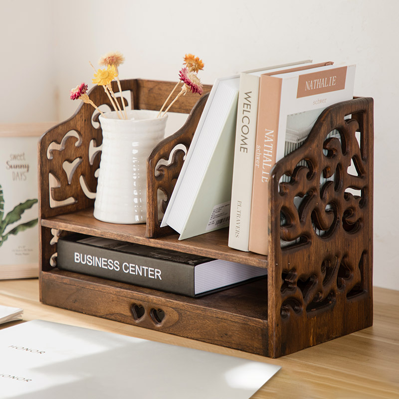 Настольная маленькая книжная полка из натурального дерева для школьников, система хранения, ретро книжный шкаф