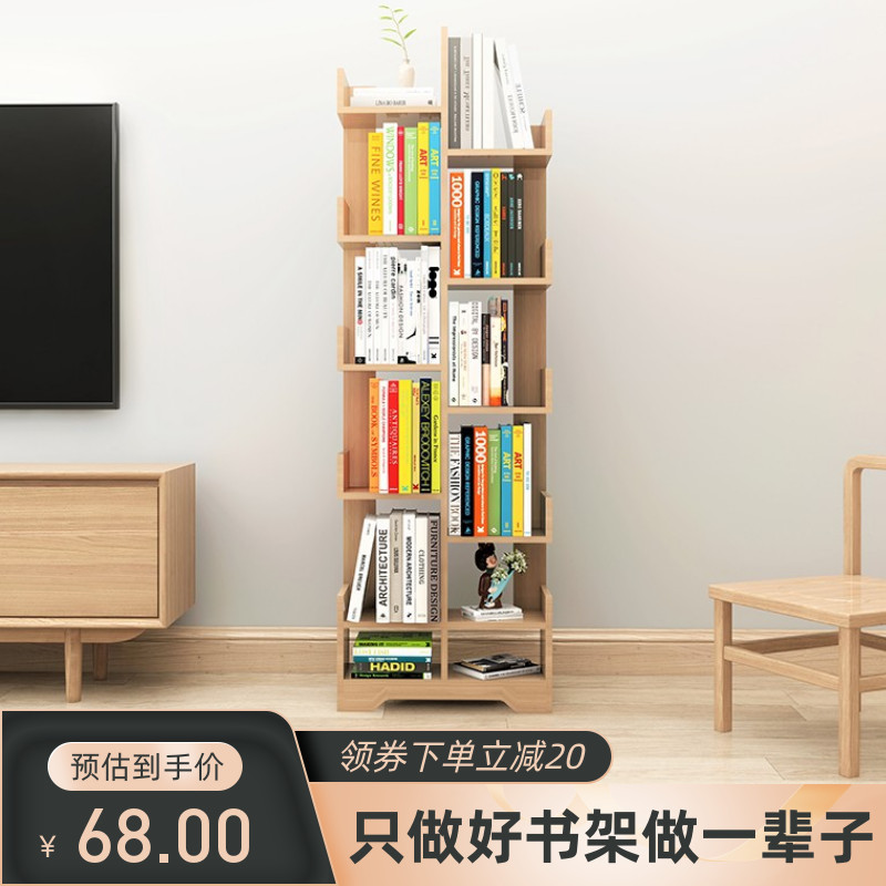 Книжная полка из натурального дерева, простой книжный шкаф, многослойная система хранения для спальни, коробочка для хранения