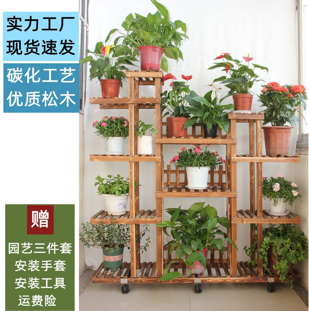 Железный цветок набор живота Балкон Балкон Гостиная Многослойная напольная пола -пол Сплошная древесина Сочная ступенька