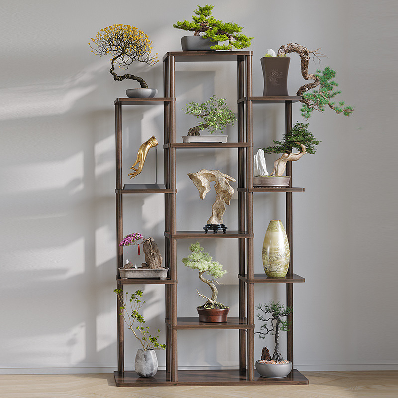 Балконный цветочный стенд деревянный многоэтажный цветочный бассейн многослойный сплошной древесина в гостиной гостиной.