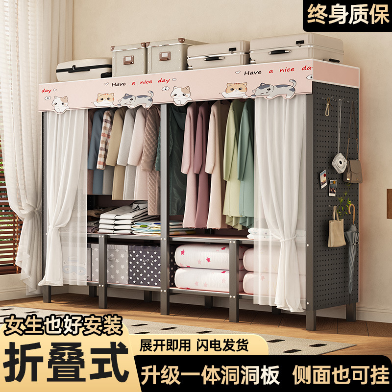 Простой шкаф для дома, спальни, тканевый шкаф, утолщенный и усиленный сборный шкаф для хранения, стальной каркас, аренда гардероба, подвесной шкаф для одежды