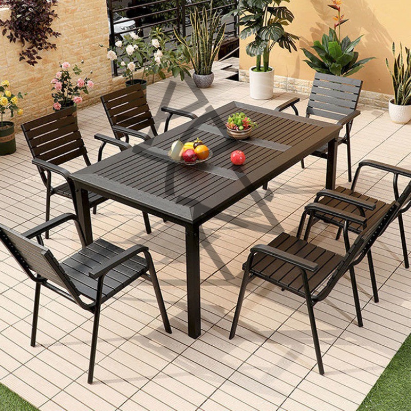 Столы на открытом воздухе и стулья пластиковые деревянные садовые на рабочем столе Антикоррозионные осадки солнцезащитный крем на открытом воздухе.