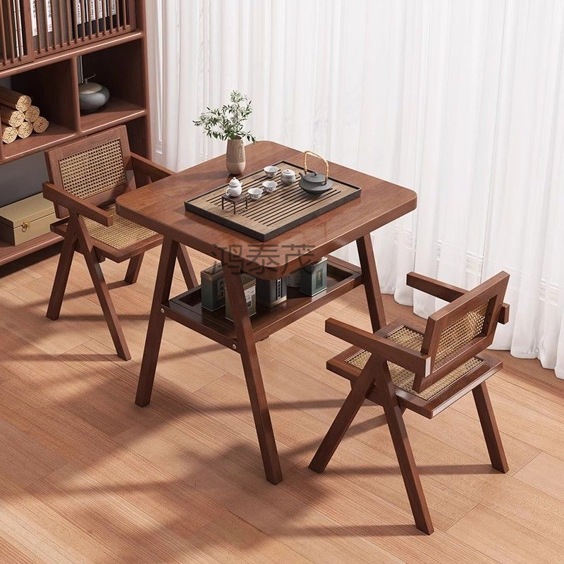 HTM1 Сплошное дерево балкон -чайное стол и стул Комбинированная таблица простых переговоров Интернет знаменитость One Table Два стулья небольшие квартиры.