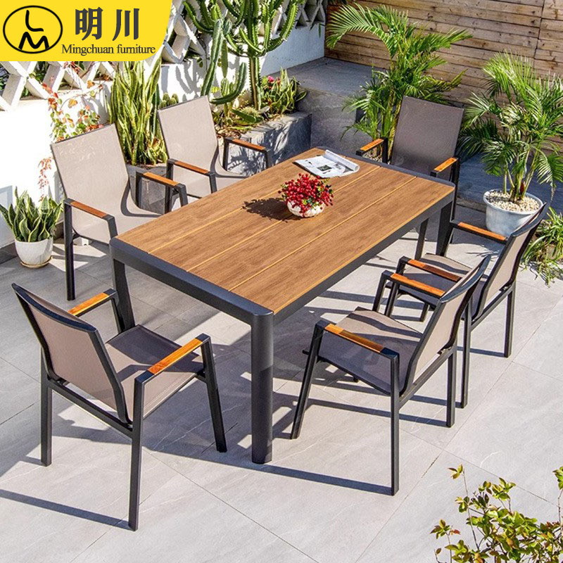 Современные простые открытые столы и стул Маленький Квартирный двор открытый -пластиковые деревянные столы и кресло Комбинированные кофейня Открытые повседневные столы и стулья