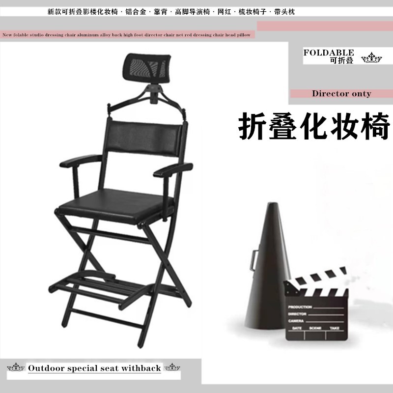 Новый алюминиевый сплав сплавенный макияж Стул назад с высоким ножом режиссер-стул интернет-знаменитость фото студия поправки с головкой подушкой